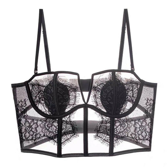 French Eyelashes Lace Sexy Lingerie Thin Back Shaping Soft Steel Ring Boning Corset Boning Corset Body Shaping Vest Bra Set