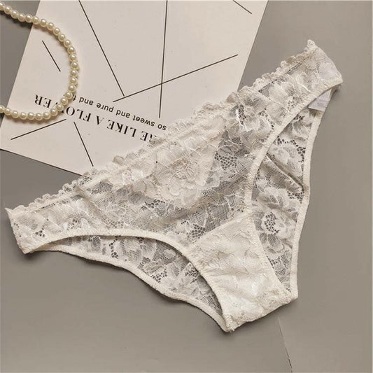 Lace Pansy Cross Strap Breathable Low Waist Briefs