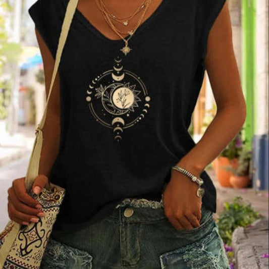 Summer European And American Fashion Casual Top Women's V-neck Sleeveless Loose T-shirt