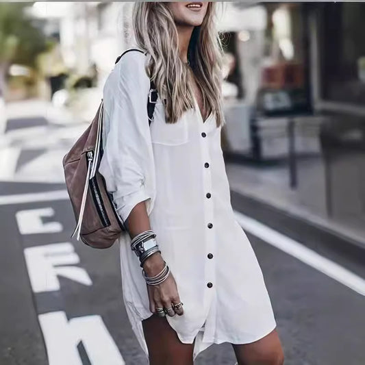 Autumn New Pullover Collar Decorated With Buttons Long Sleeve Top Loose Shirt