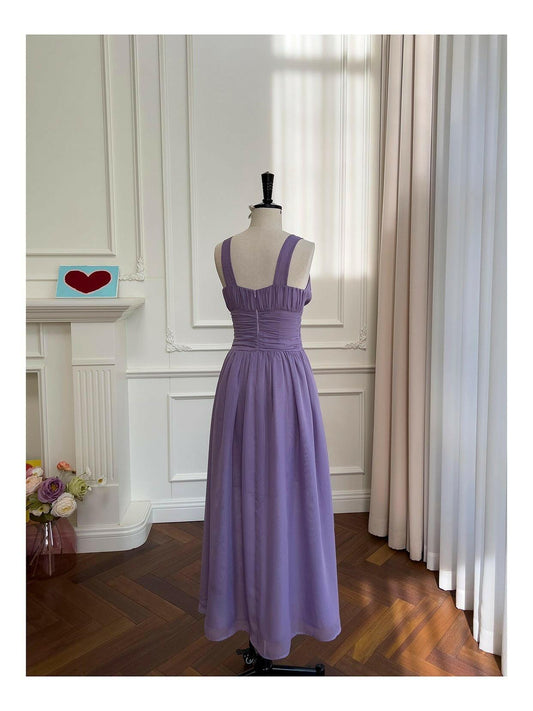 Sexy rückenfreies, ärmelloses, purpurrotes Prinzessinnenkleid aus Samt mit tiefem V-Ausschnitt und Hosenträgern