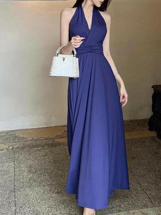 Sommerliches, rückenfreies Neckholder-Kleid im französischen Stil mit Temperament