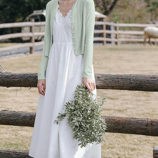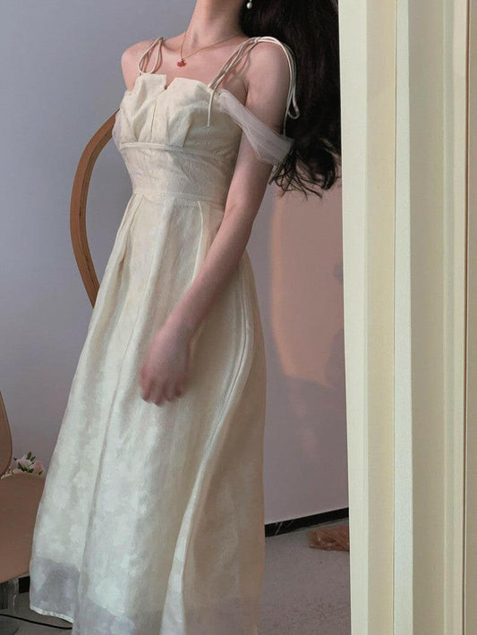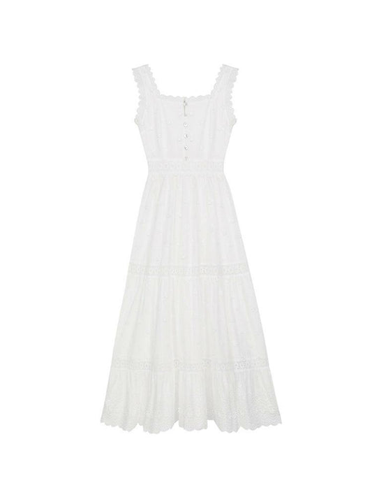 Vintage Damen Jacquard Hosenträger Weißes Kleid