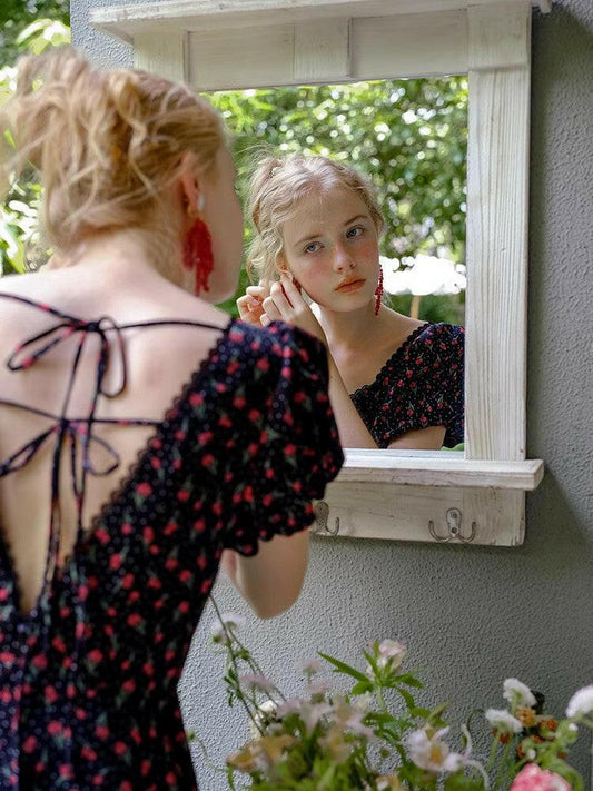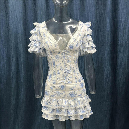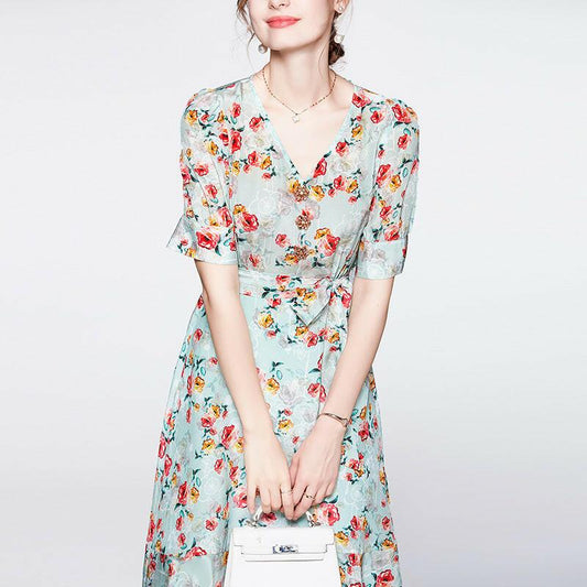 Kurzes Chiffonkleid mit Blumenmuster für Damen