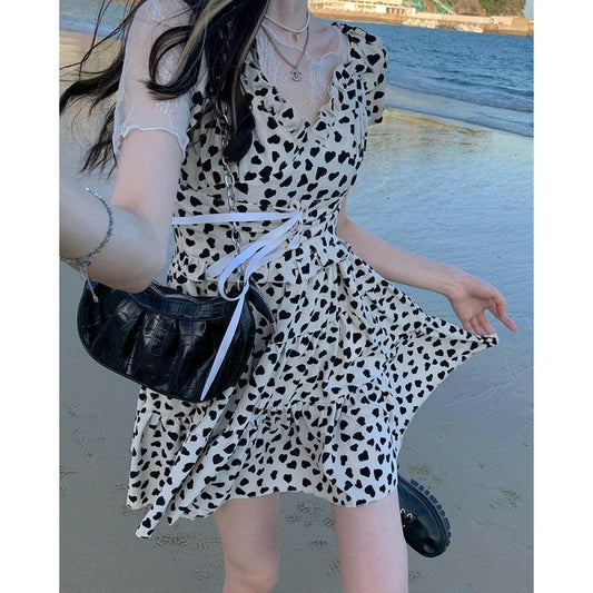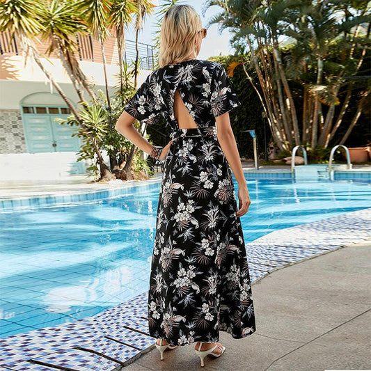 Frühling und Sommer European Beauty mittellanges Kleid mit V-Ausschnitt und Taillendruck