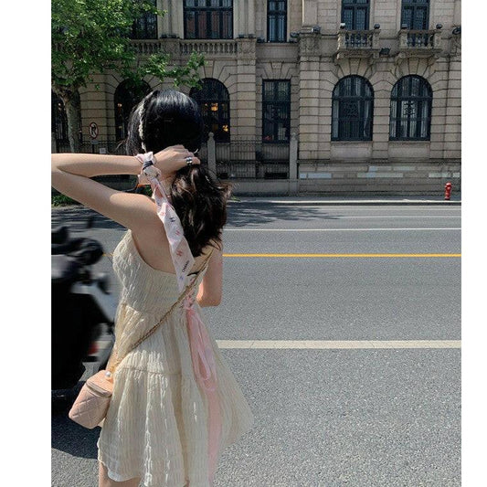 Damenmode Einfaches Neckholder-Kleid mit plissiertem Taillenrüschendruck
