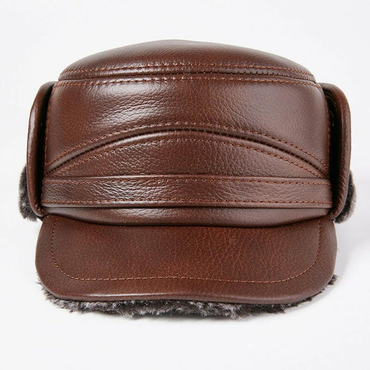 Warmer Ohrenschutz für Herren im Herbst und Winter, flacher Rindslederhut