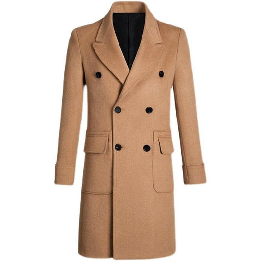 Schlanker zweireihiger Herren-Trenchcoat aus Wolle für Herbst und Winter