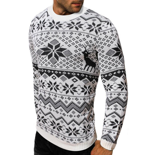Schneeflocken-Weihnachtspullover für Herren mit Rundhalsausschnitt