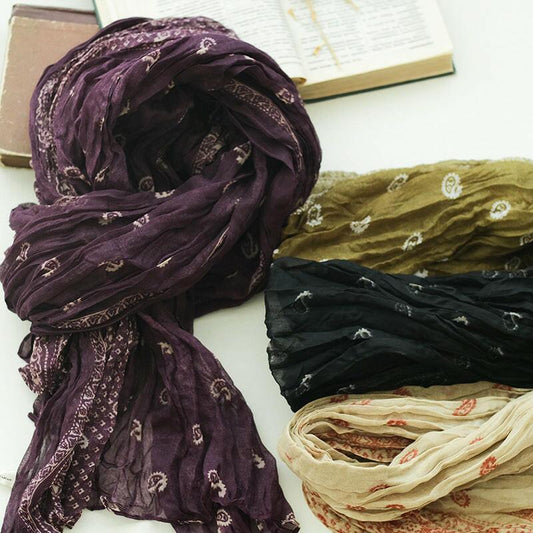 Neuer Schal aus Baumwolle und Leinen mit Cashew-Druck für Damen