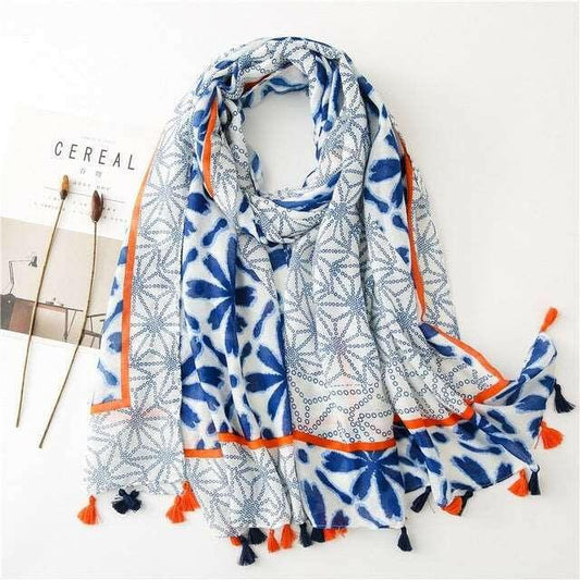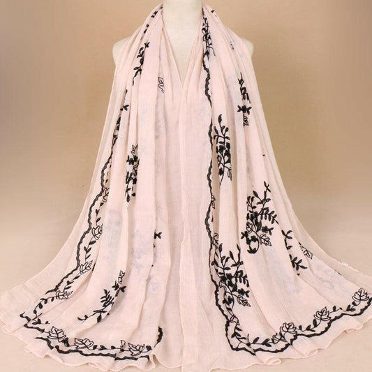 Künstlerischer, einfarbiger Schal aus Baumwolle und Leinen für Damen
