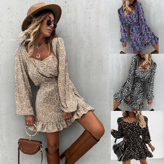 Rock Sommer Damen Neues französisches Blumenkleid mit schmaler Taille und Rock mit Blasenärmeln im Göttinnen-Stil