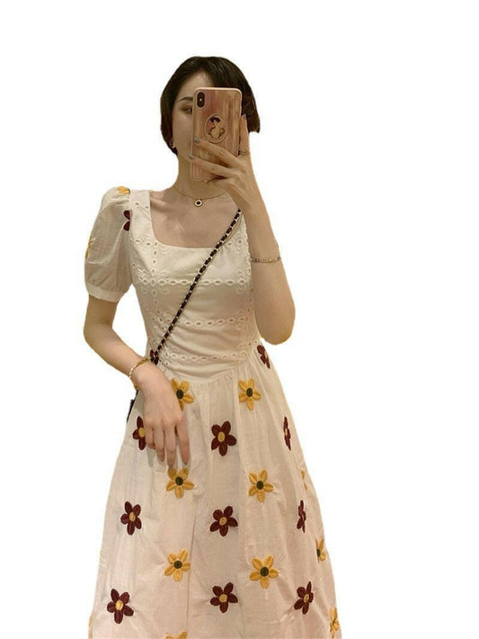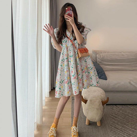 Süßes Blumenkleid für Damen, Sommer, neuer Frühling, französischer lockerer Babykragen, Blasenärmel, Rock für den Sommer