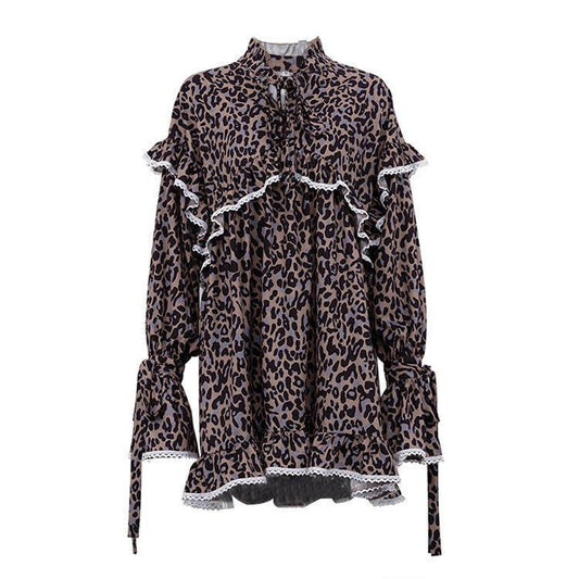 Bedrucktes Kleid für Damen, modischer Rock mit ausgestellten Ärmeln und Schnürung