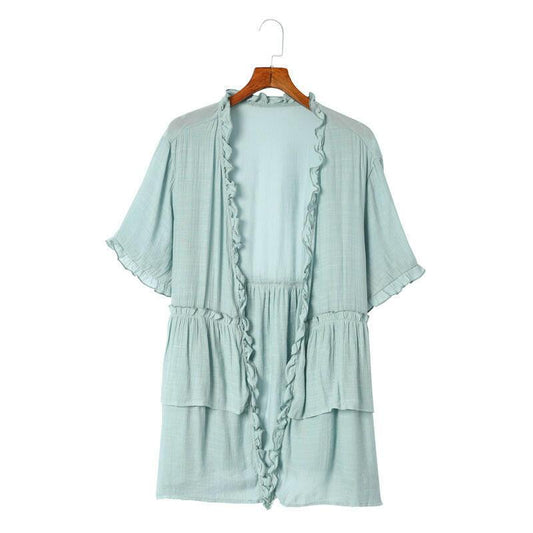 Reine Farbe Rüschen Cardigan Damen Sommer Casual Top