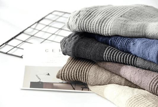 Gestreifter Faltenschal aus Baumwolle und Leinen
