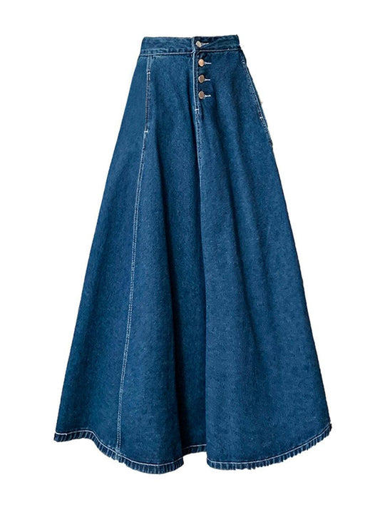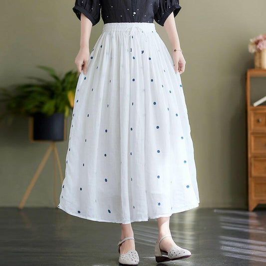 Baumwoll- und Leinenrock, temperamentvoller, figurschmeichelnder, fließender langer Rock für Damen