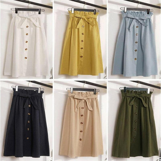 Eleganter Knopfrock mit hoher Taille, weiblicher Faltenrock