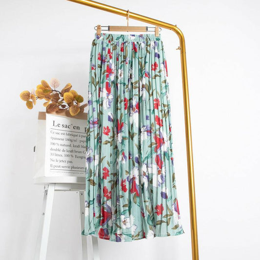 Mittellanger, plissierter Blumenrock aus Chiffon