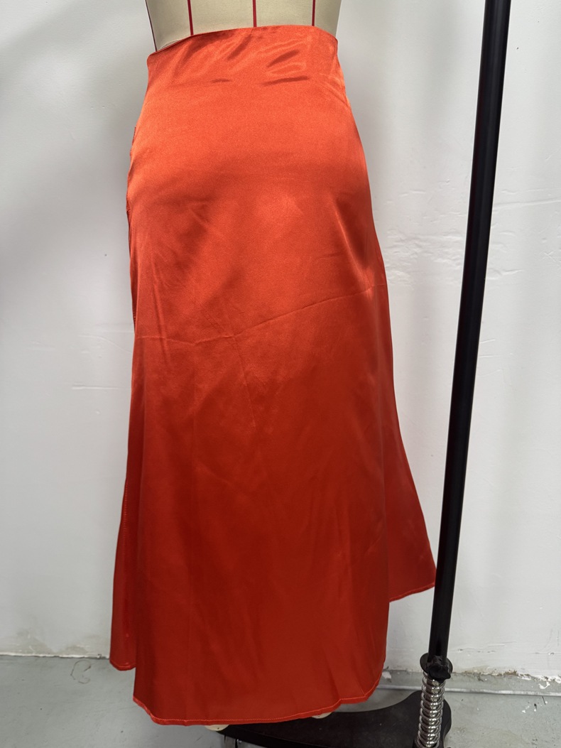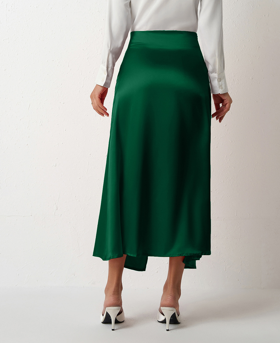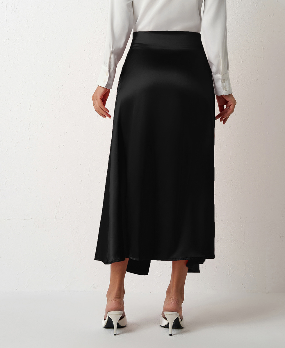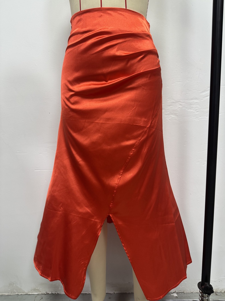 Women Clothing High Waist Slit Satin Long Skirt Pleated Skirt Zipper Fishtail Hip Skirt
