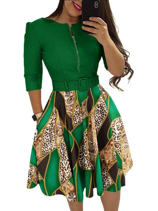 Robe à manches courtes et col en V imprimé taille fine pour femme