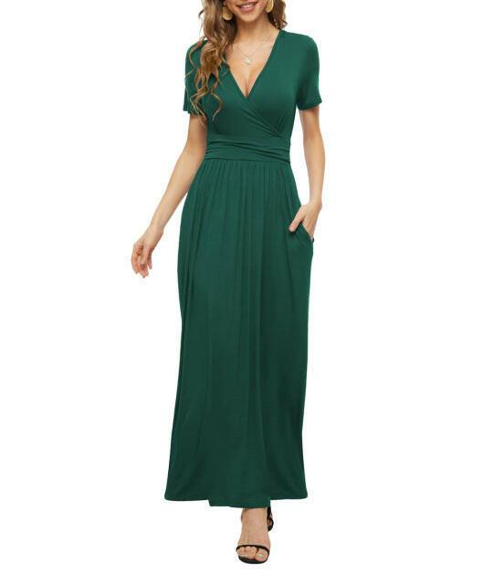Robe longue à volants et col en V pour femmes, tempérament de loisirs