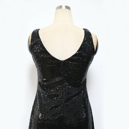 Robe longue noire sans manches, dos nu, col en V, avec paillettes, pour femmes