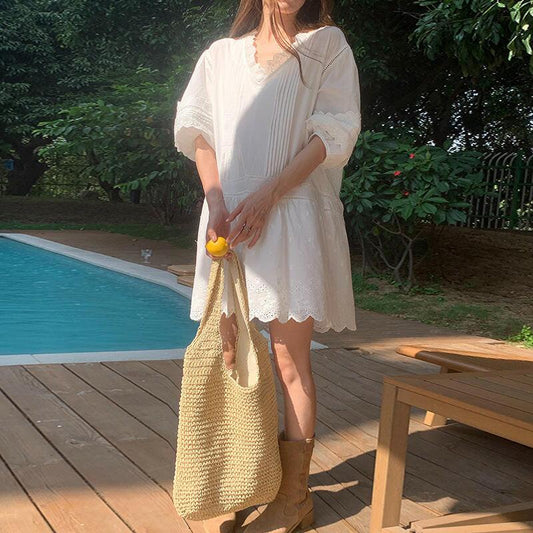Robe imprimée d'été à manches courtes et col en V pour dormir