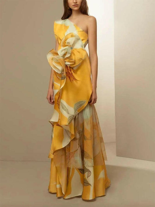 Robe rétro à épaules inclinées pour femmes, tenue décontractée, contrôlée à la taille, imprimée