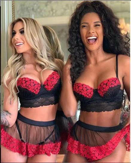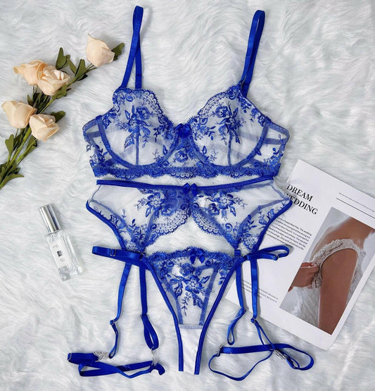 Ellolace Lingerie Sensual Lace Underwear Transparent Embroidery 3-Piece Garters