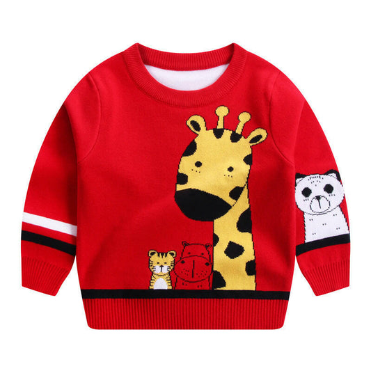 Pull Enfant Pull Tricot Girafe Col Rond Coton Double Couche Pull Chaud