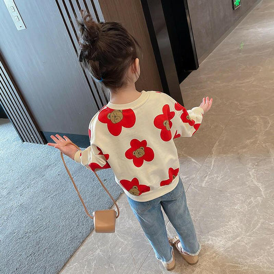 T-shirt ours fleuri pour filles, chemise à bascule, tendance, nouvelle collection