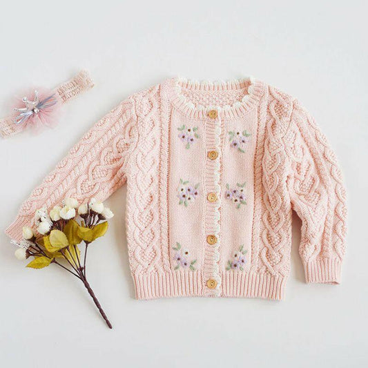 Cardigan fleuri brodé à la main pour filles célibataires, fil de coton pour bébé