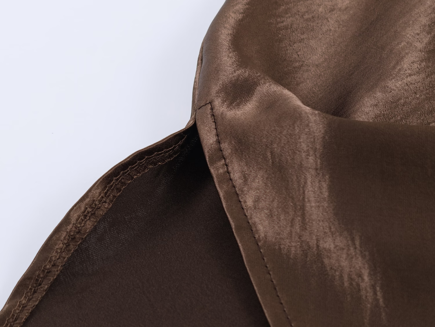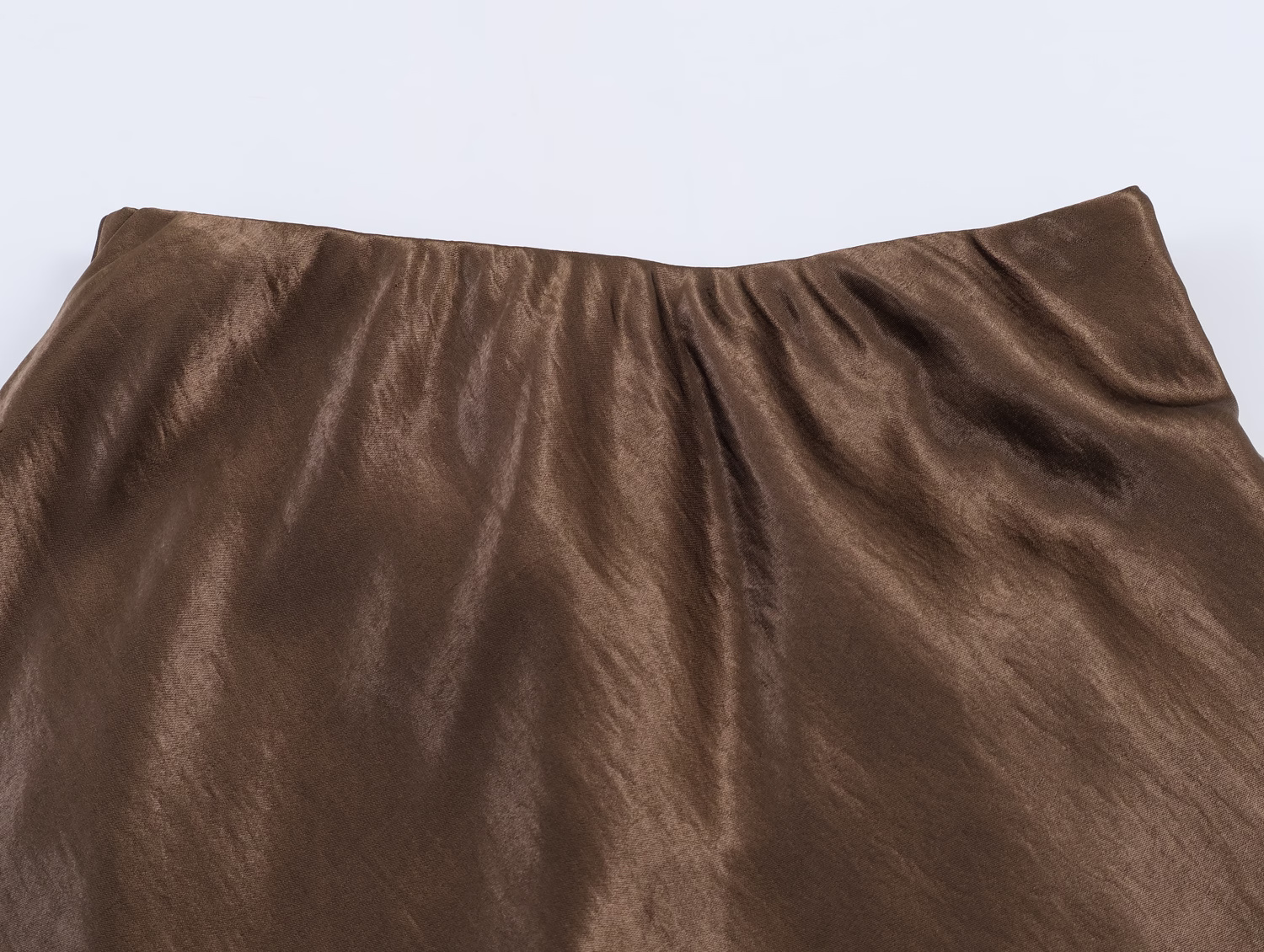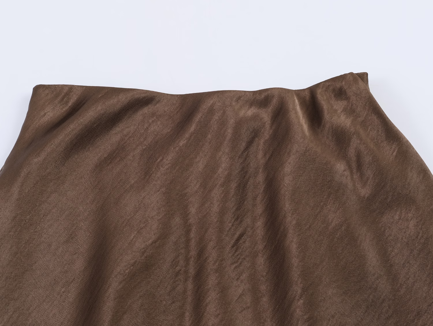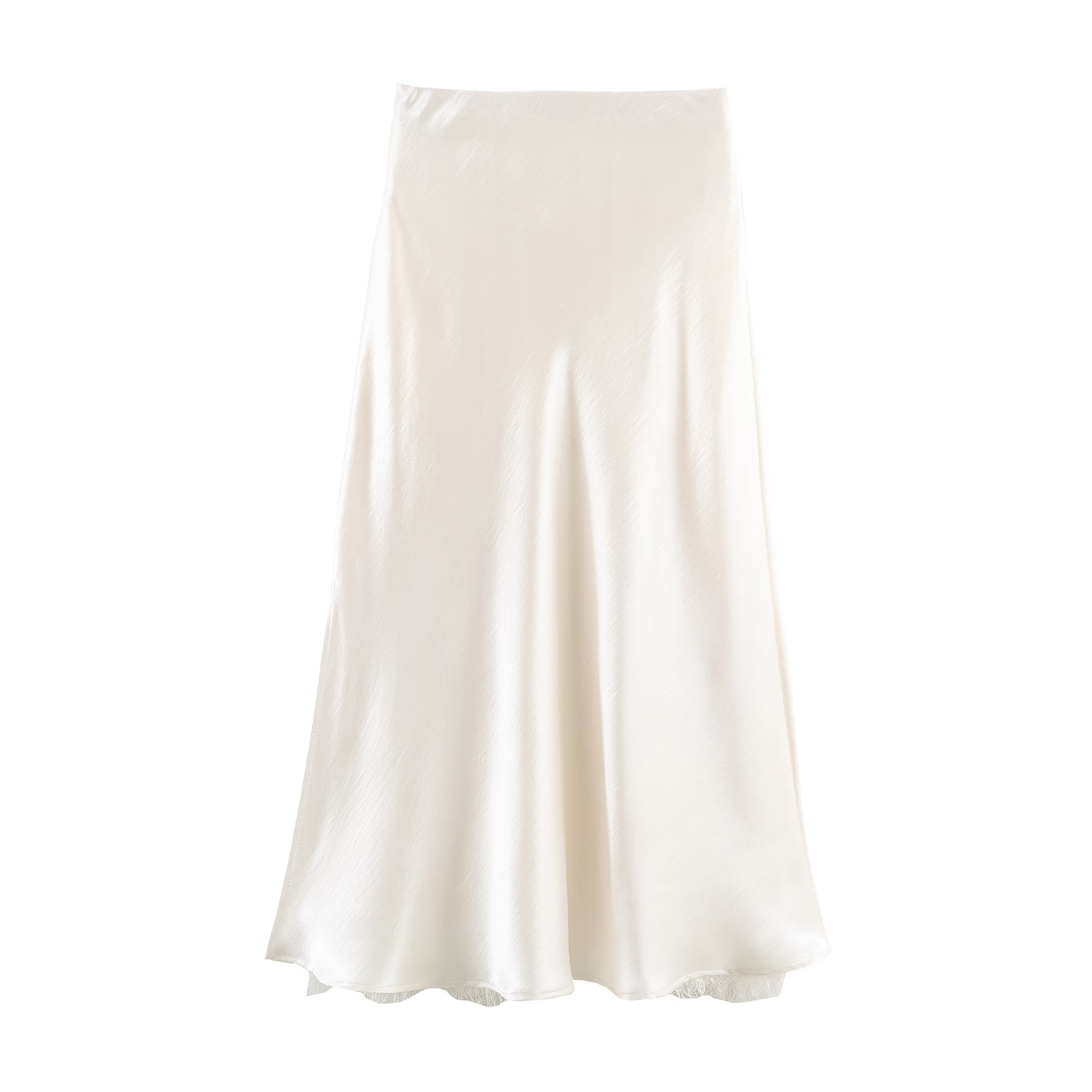 Satin Acetate Lace Patchwork Slit Skirt Long Skirt