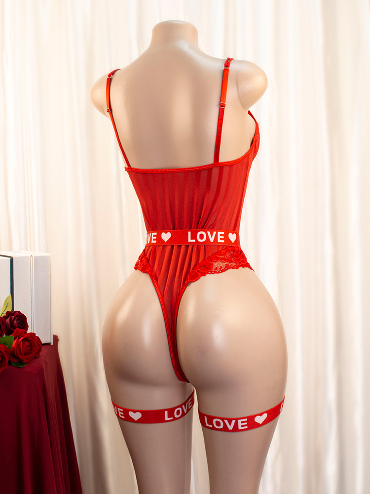 Valentine Day Lace See through Fine Mesh Sexy Red Sexy One Piece Underwear