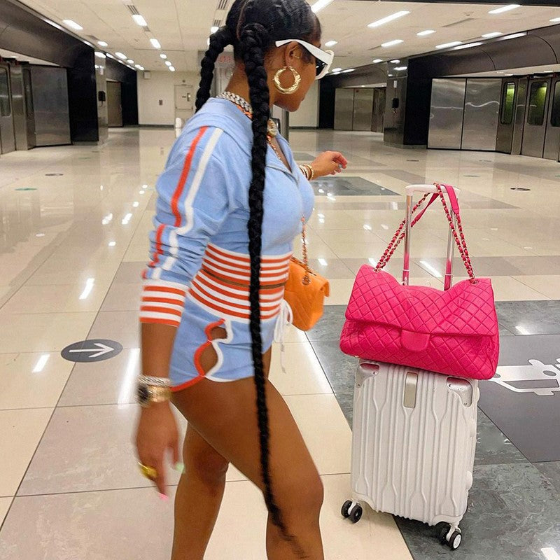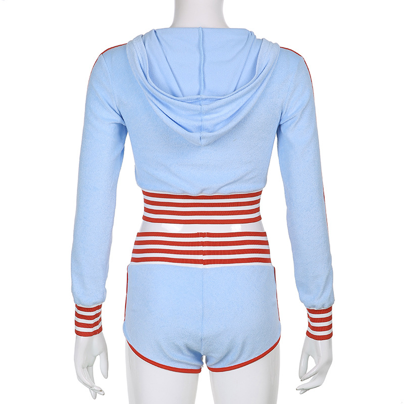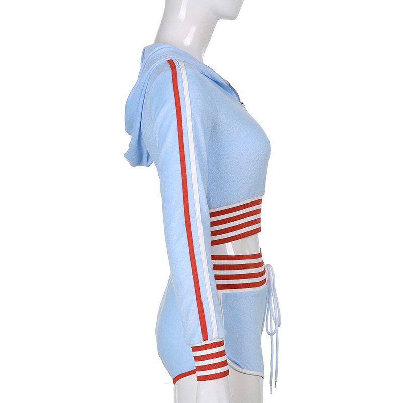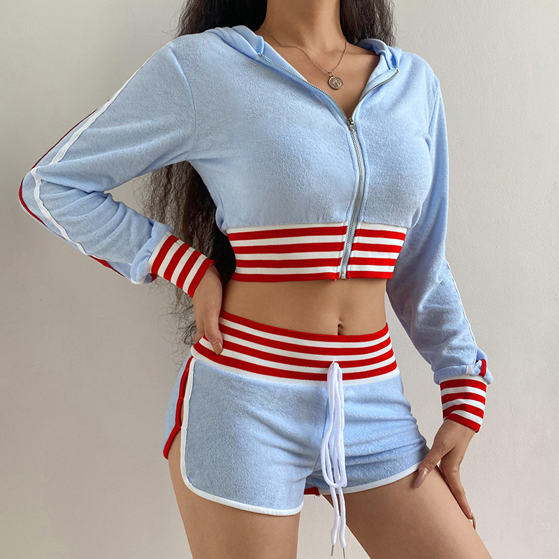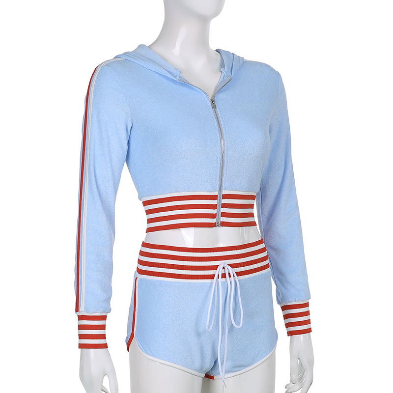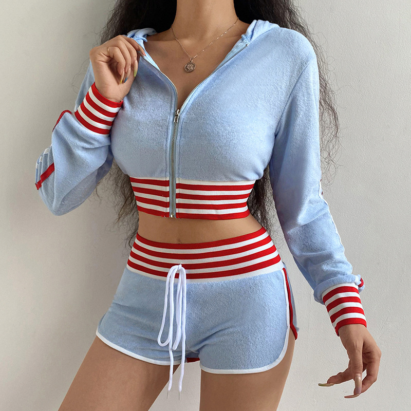 Contrast Sport Zip Cardigan Top Two Piece Sports Style Suit