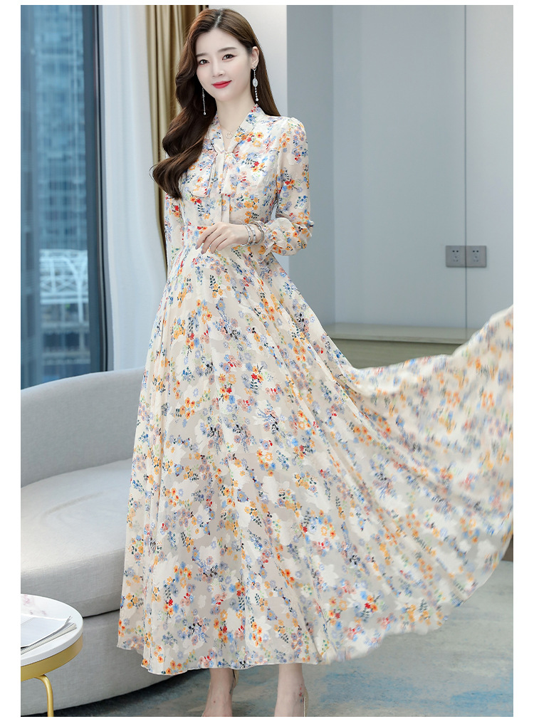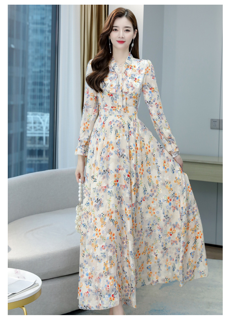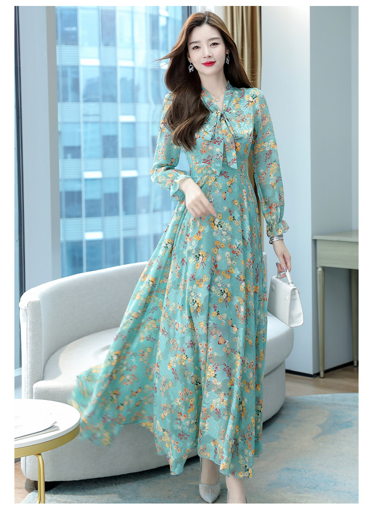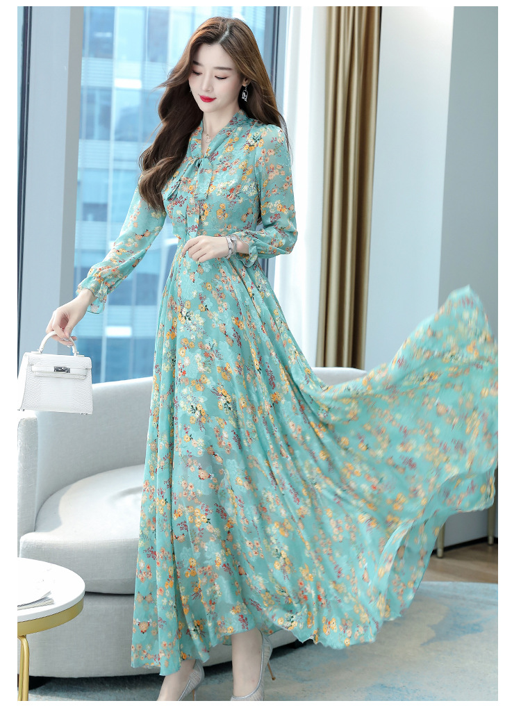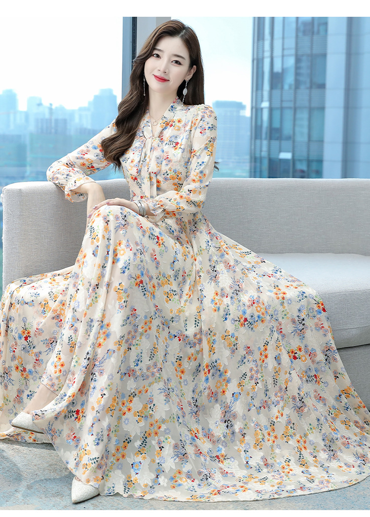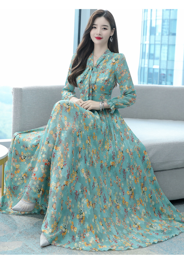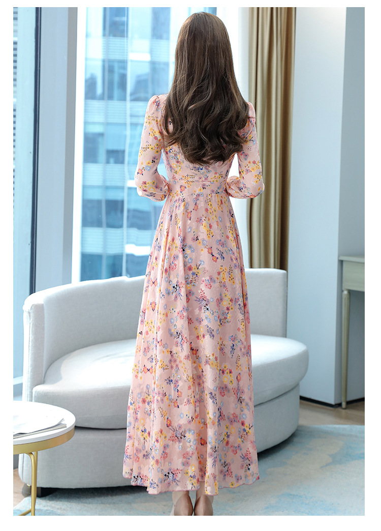 Elegant Slim Fit Below The Knee Bow V-neck Jacquard Maxi Dress
