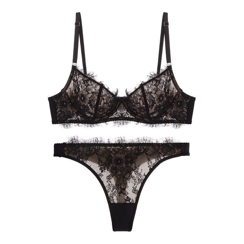 European French Eyelash Lace Sexy Lingerie Women Breathable Bra Set
