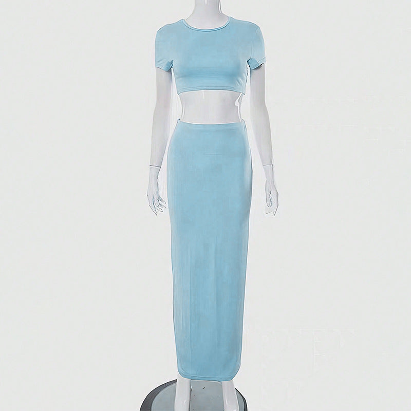 Female Casual Crop Top Hip Hugging A-line Skirt Set