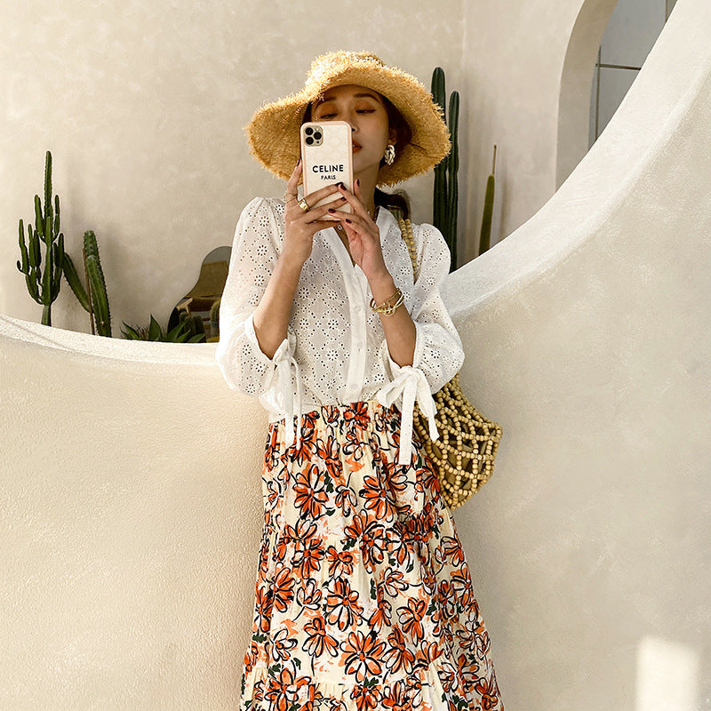 French Shirt Women White Cotton Embroidery Ladies Temperament Ladies Shirt
