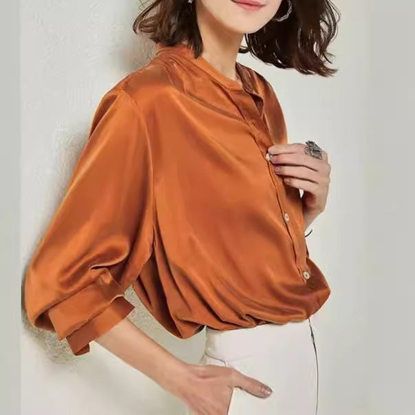 French Simplicity Loose And Lazy Style Silk Shirt For Women Autumn
