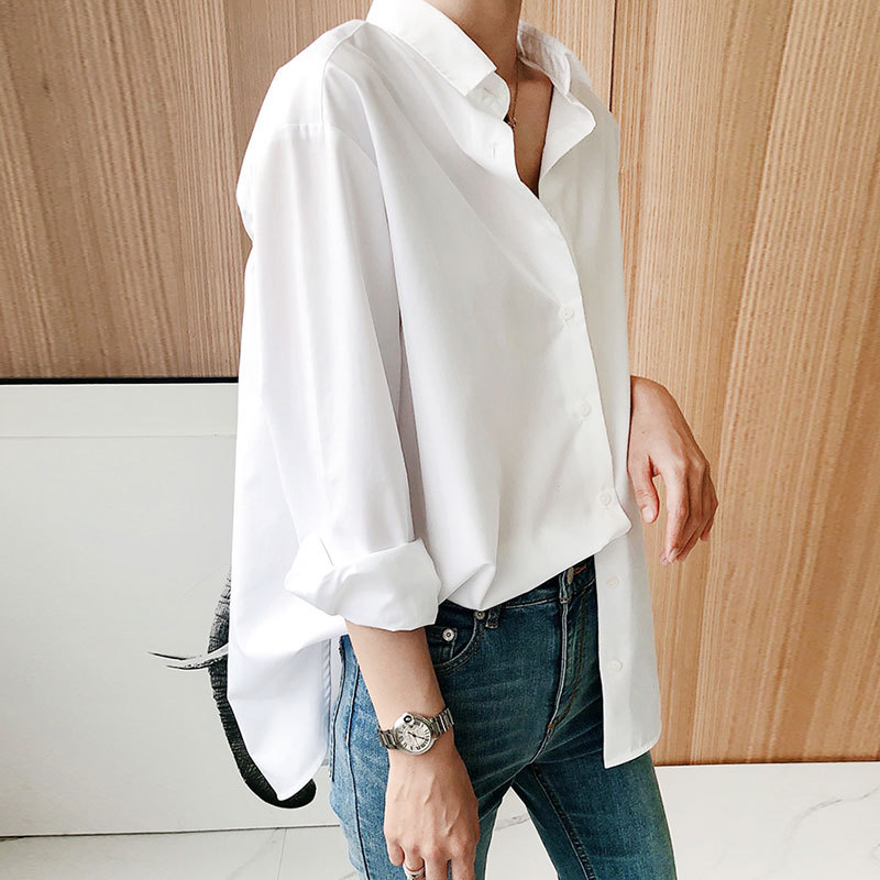Spring And Autumn Cotton White Shirt Long Sleeve