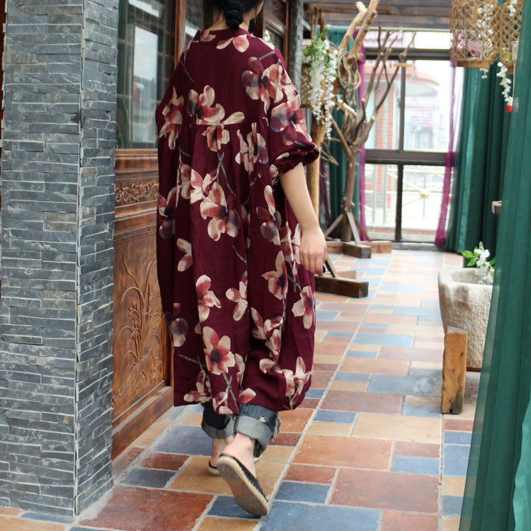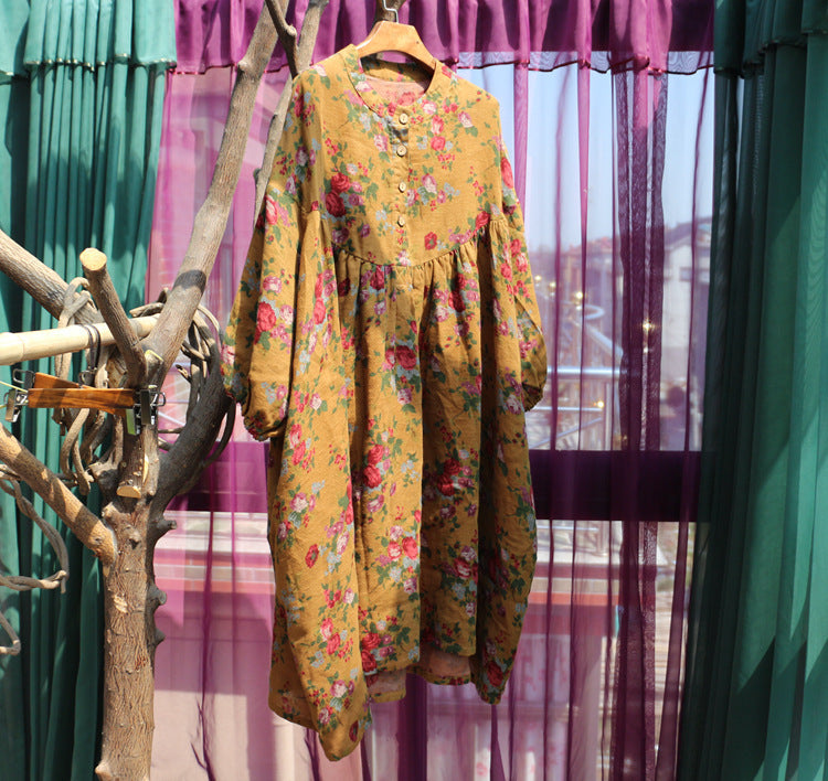 Suitable Double-layer Washed Cotton Nostalgic Flower Handle Loose Ninth-sleeve Baby Shirt