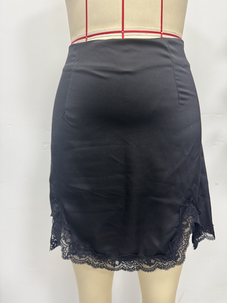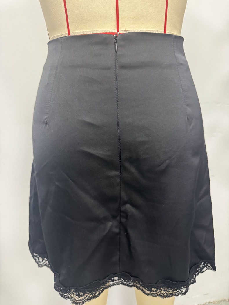 Women Clothing Autumn Black Sexy Lace Edge Skirt