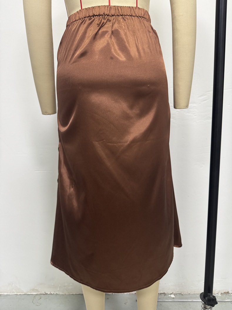 Women Skirt Summer Mid-Length Slimming Draping Split Business Skirt Office High Waist Skirt