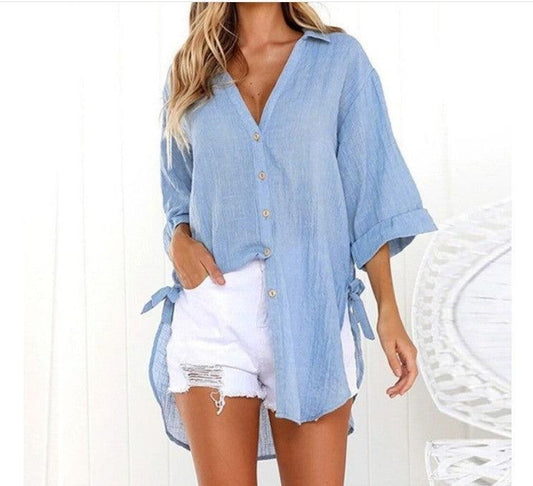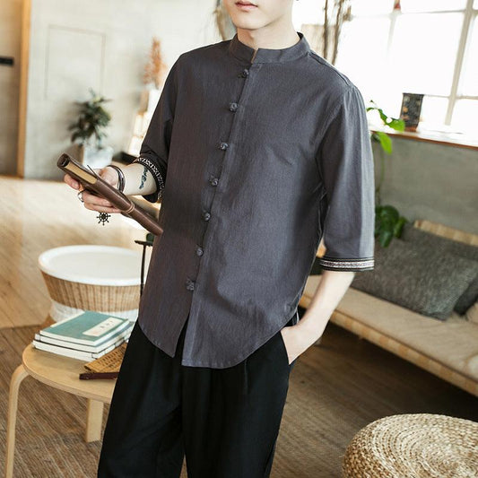 Ummer Men's Linen Shirt Simple Pullover Lapel Men's Linen Shirt C028