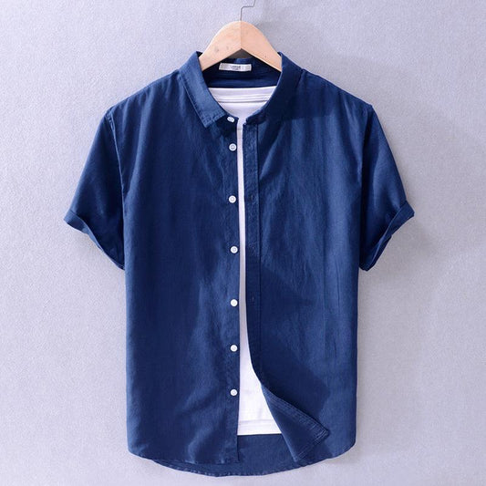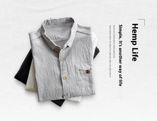 Men's Linen Short-sleeved Shirt Cotton And Linen Thin