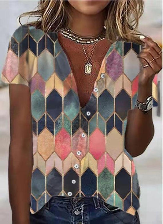 Summer New Women's Shirts European And American Printed Loose Short-sleeved Shirts