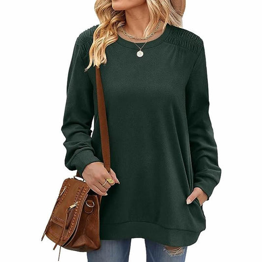 Fashion Long Sleeve Pullover Sweatshirt With Pockets Casual Loose Solid Color Top Womens Clothing
