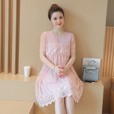 Summer new maternity dress Korean shirt lace crochet flower maternity dress long pregnant women dress
